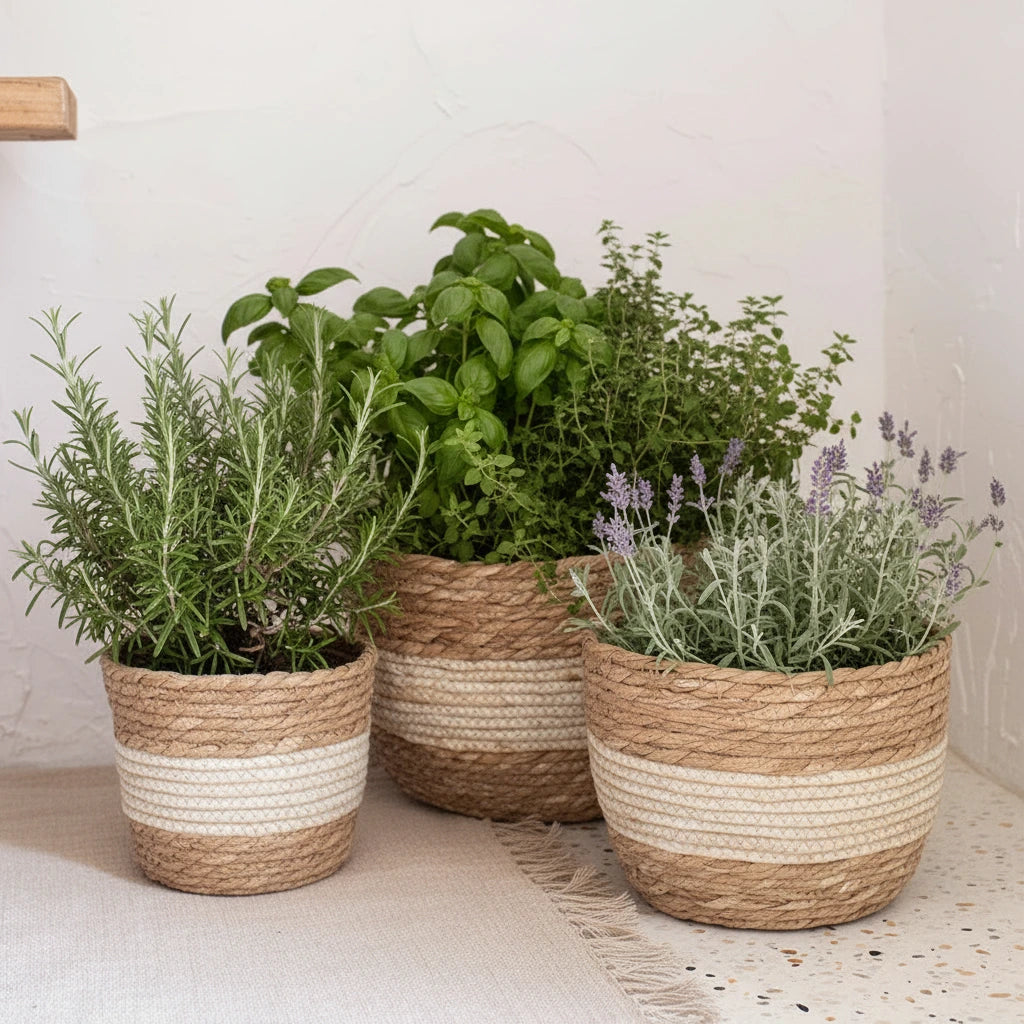 Mit drei praktischen Größen (S: 18 cm, M: 22 cm, L: 25 cm Durchmesser) finden Sie für jeden Winkel die perfekte Lösung. Robust, wiederverwendbar und umweltfreundlich – dieser Korb ist ein zeitloses Accessoire für modernes Wohnen mit natürlichem Flair.