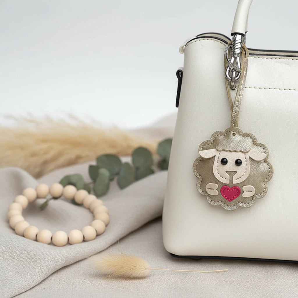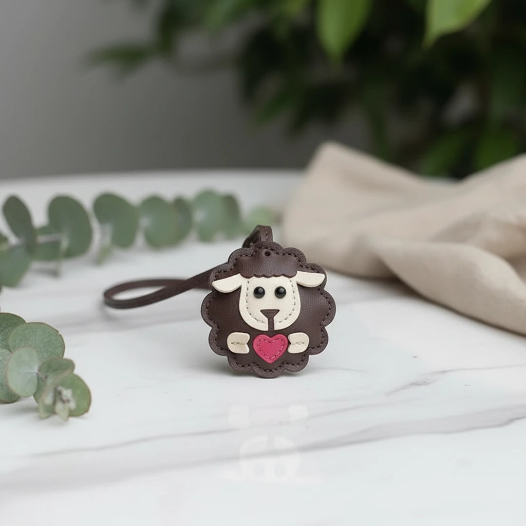 Taschenanhänger Schäfchen mit Herz - Süßer Anhänger aus PU-Leder gefertigt
