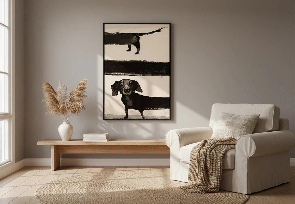 Lustiges Dackel Wandposter – Retro Leinwandgemälde für Tierliebhaber, Moderne Wohnzimmerdeko